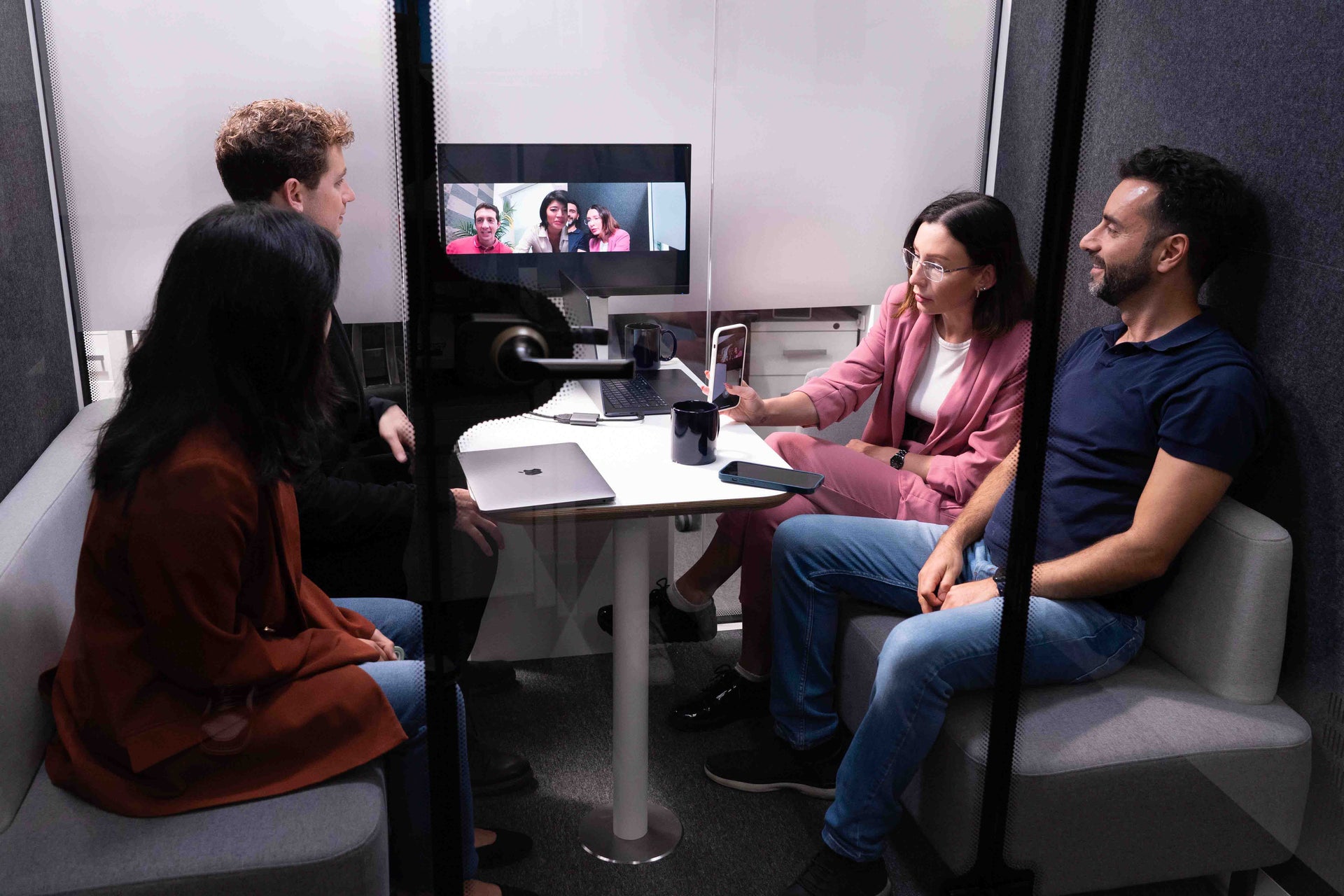 "Unlock the true potential of your office space with our soundproof meeting pods. Studies show that over 70% of meetings in the office typically involve just two to four people. By incorporating our state-of-the-art pods, you can maximize the value of your real estate and optimize efficiency."